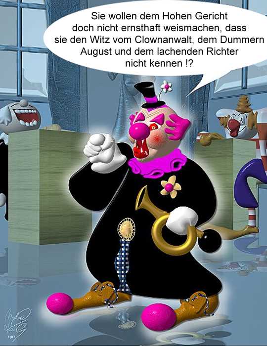 Vor Gericht nicht zu Unrecht gefürchtet: Clownanwälte im Kreuzverhör.