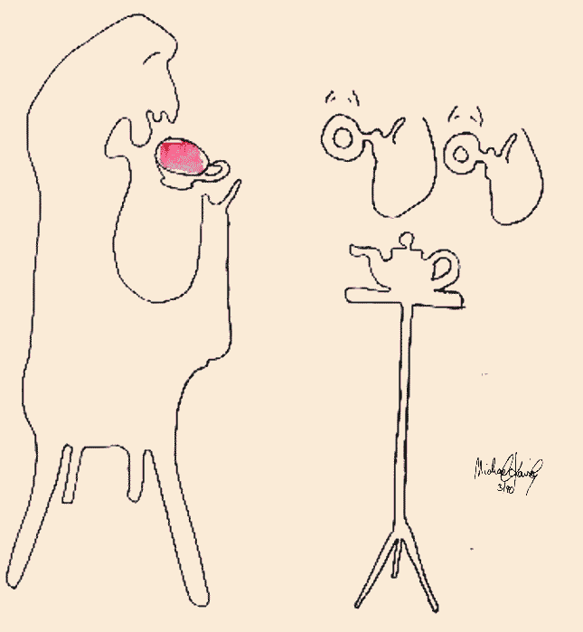 Teetrinkende Gesellschaft mit abgespreiztem kleinen Finger.